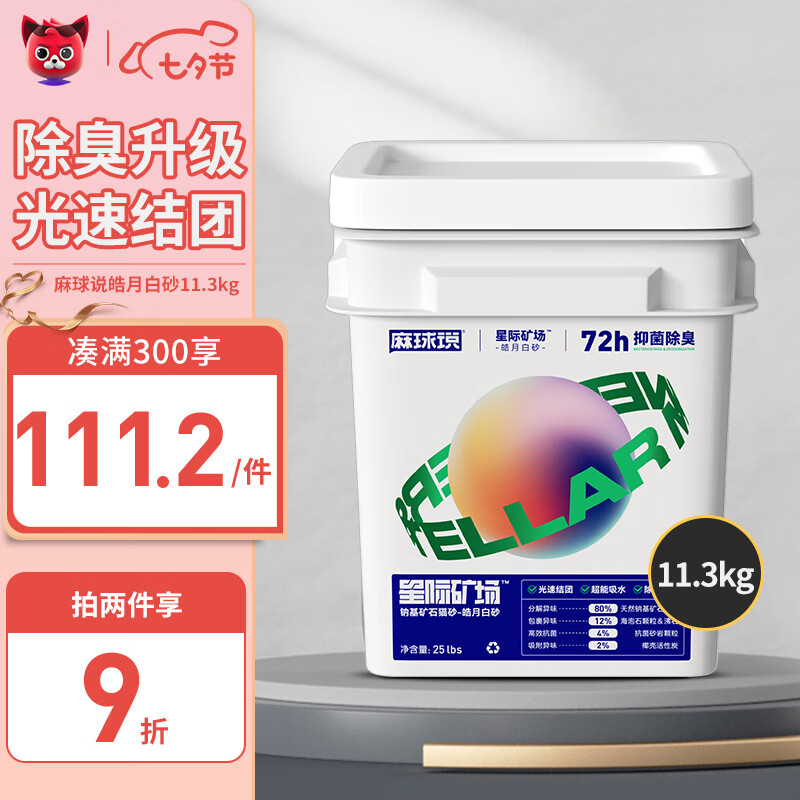 麻球说星际矿场猫砂矿砂膨润土猫砂除臭无尘矿物钠基矿石猫砂自动猫砂盆猫砂 【桶装升级】皓月白砂11.3kg/桶