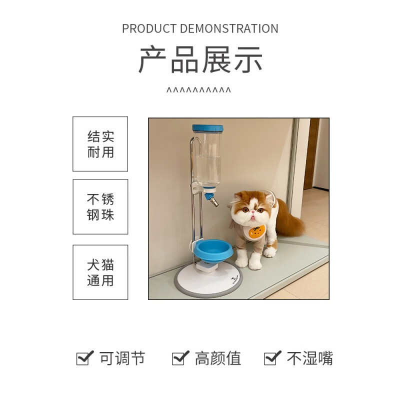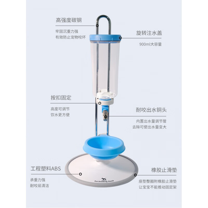 凡佰酷宠物饮水器头立式大容量不湿嘴悬挂式滚珠猫狗饮水机 蓝色