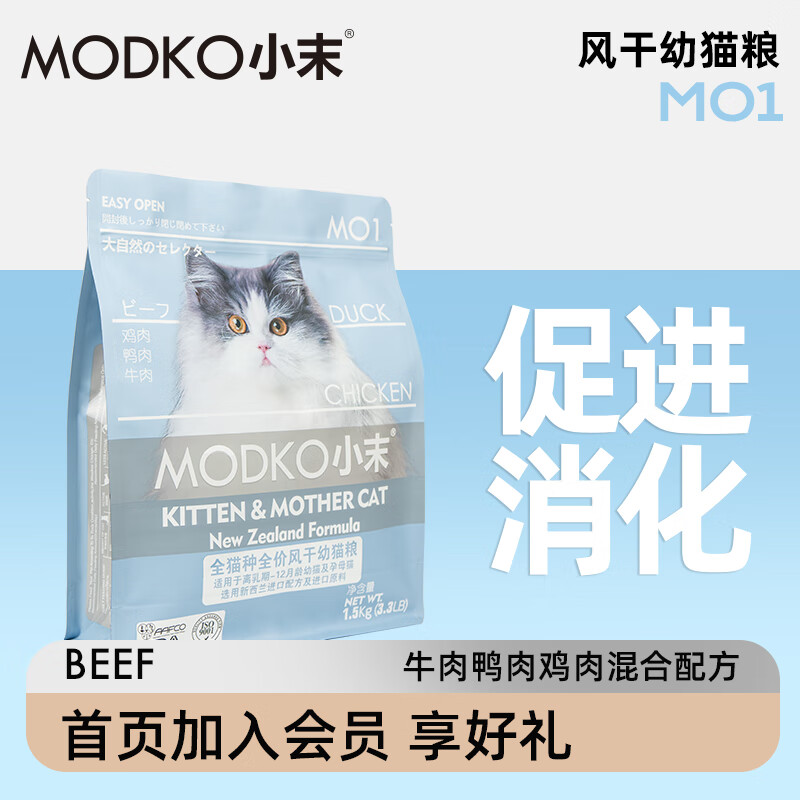 小末MODKO宠物全价风干双拼主粮挑嘴配方母猫幼小猫汤恩贝1.5/10kg MO1 风干双拼幼猫粮1.5KG mo