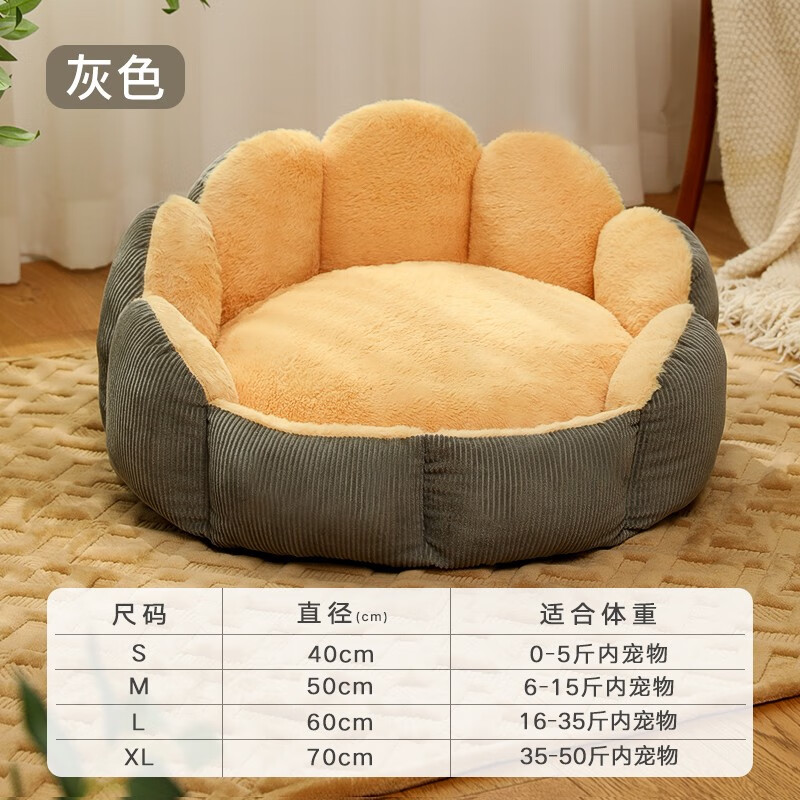 Kimpets狗窝冬季保暖四季通用泰迪小型犬狗狗床小狗猫窝猫床冬天宠物用品 猫爪窝【灰色】 中号(直径50cm建议6-15斤内宠物)