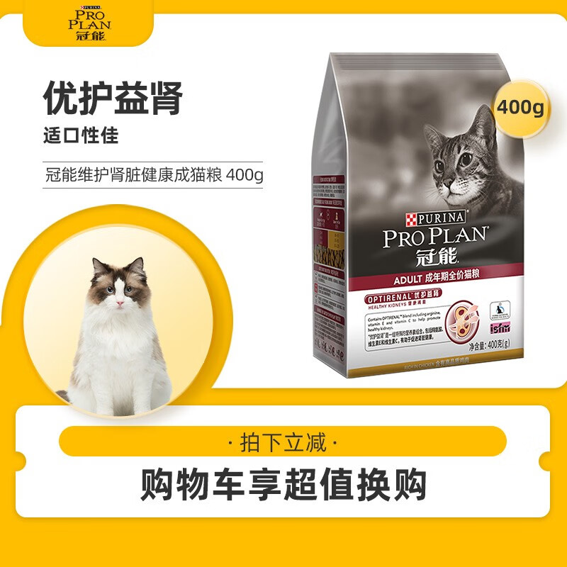 冠能(PRO PLAN)猫粮 宠物猫咪通用成猫老年猫全价粮 挑嘴猫咪主粮 维护肾脏健康成猫粮 400g