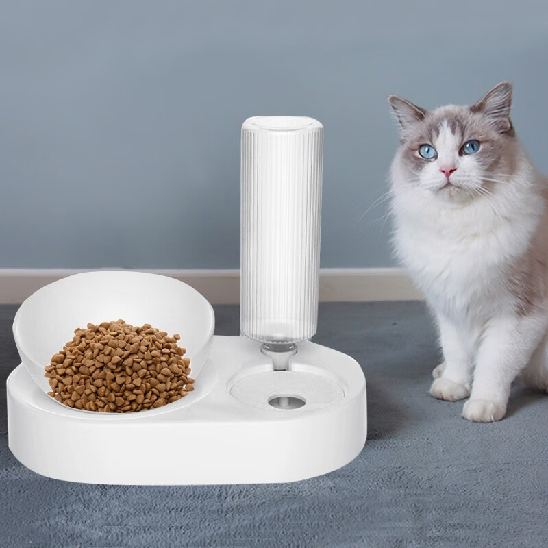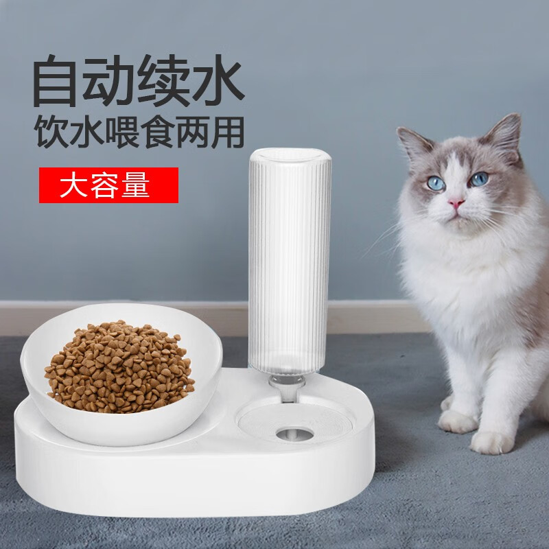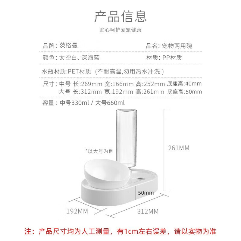 茨格曼 猫碗狗盆猫食盆宠物食盆狗狗自动饮水喂食双碗喝水器 15度倾斜猫盆 跑道-太空白-中号 *