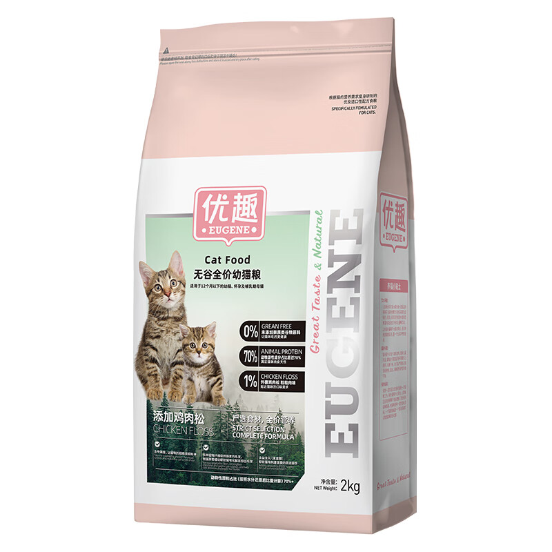 优趣猫粮升级款34%更高蛋白70%动物源性成分天然无谷全价幼猫粮2KG4斤 【34%高蛋白 鸡肉松】无谷幼猫粮 2kg 1岁以下幼猫