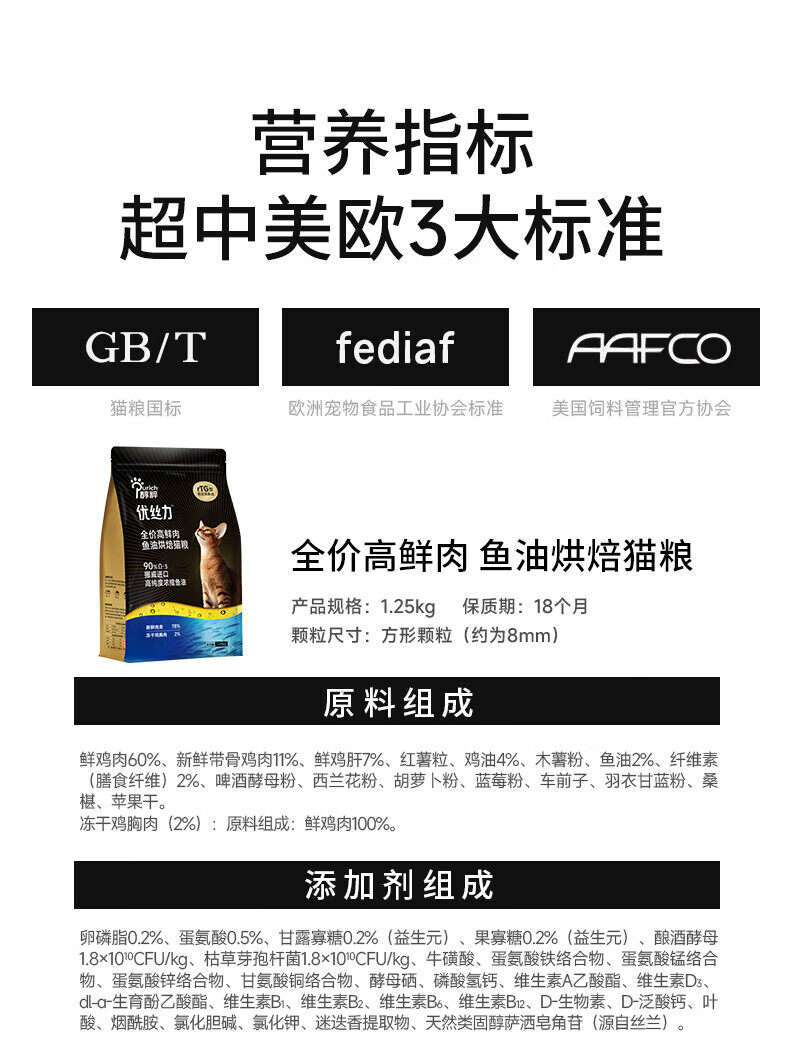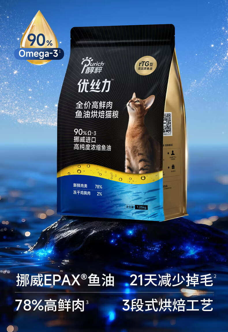 醇粹猫粮 优丝力全价高鲜肉 鱼油烘焙猫粮 1.25kg