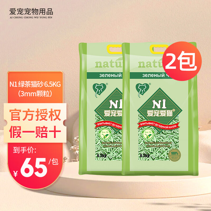 N1爱宠爱猫n1猫砂 6.5kg豆腐猫砂混合猫砂除臭无尘易结团可冲马桶猫沙豆腐砂 绿茶豆腐猫砂6.5kg*2包(3mm颗粒