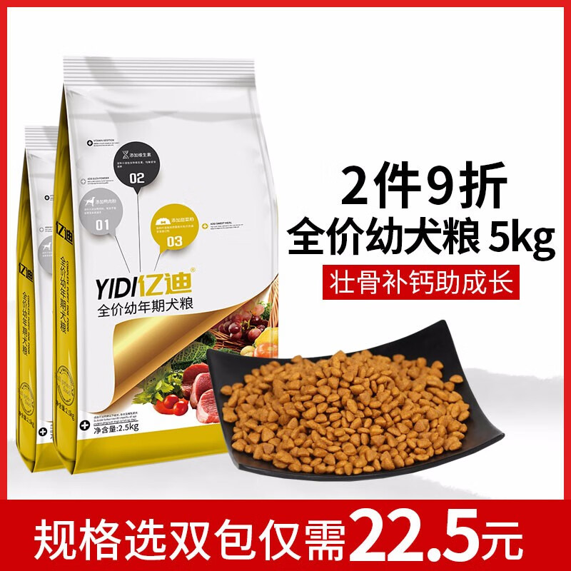 亿迪狗粮幼犬粮5斤泰迪金毛萨摩耶全犬种通用维生素狗粮 2.5kg