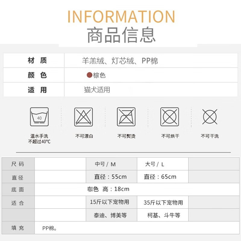 【下单立得凉席*1件】狗窝猫窝可水洗泰迪狗窝四季通用中小型犬狗狗垫子猫咪宠物狗床狗屋用品 小号直径55cm 建议15斤内