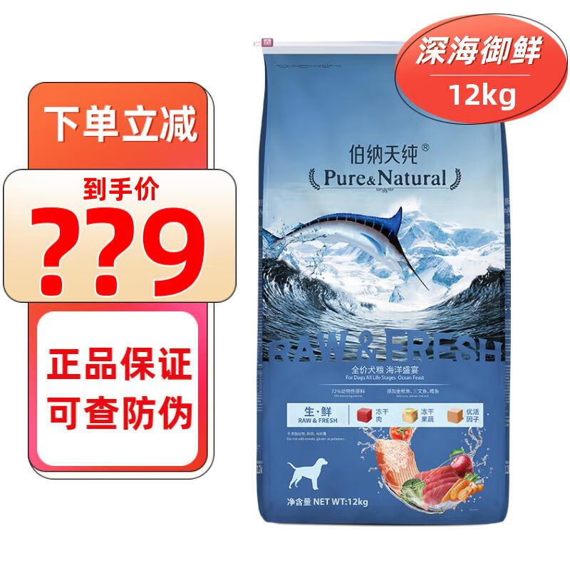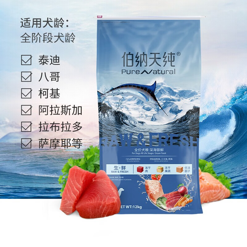 伯纳天纯伯纳天纯狗粮海洋盛宴12kg三种鱼金枪鱼三文鱼鳕鱼配方深海御鲜 海洋盛宴12kg