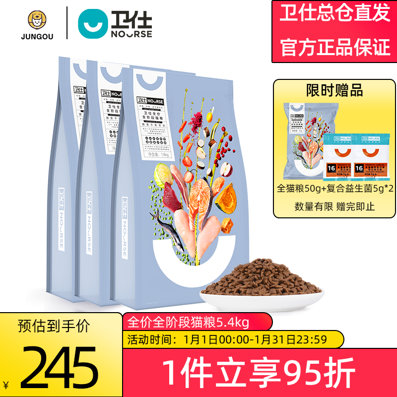 卫仕全猫粮全价全阶段猫粮成猫幼猫猫粮膳食平衡系列全期猫粮 全阶段猫粮3包(5.4kg)