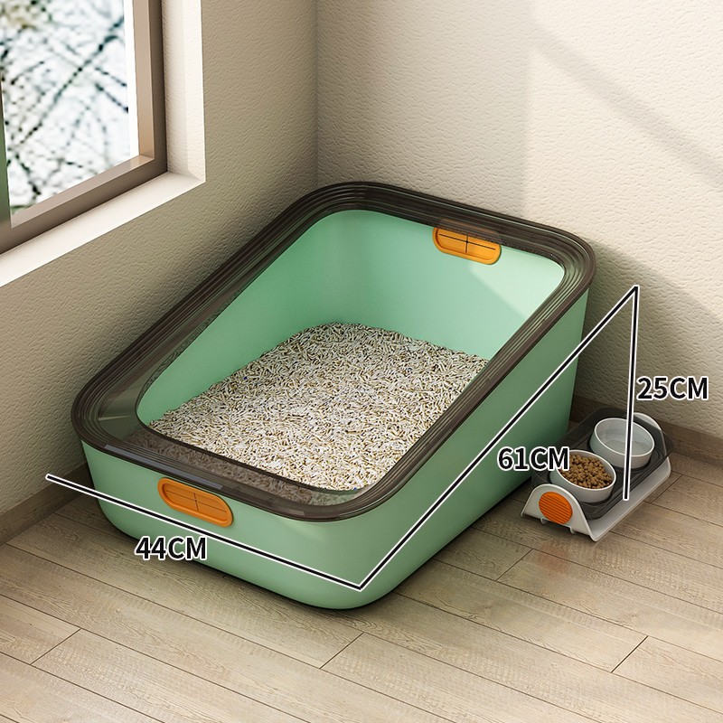 宠趣汇猫砂盆特大号猫砂盆开放式防臭除臭超大号猫厕所半封闭猫盆成猫幼猫猫咪猫便盆 薄荷绿(60cm超大巨无霸)带防漏食猫碗