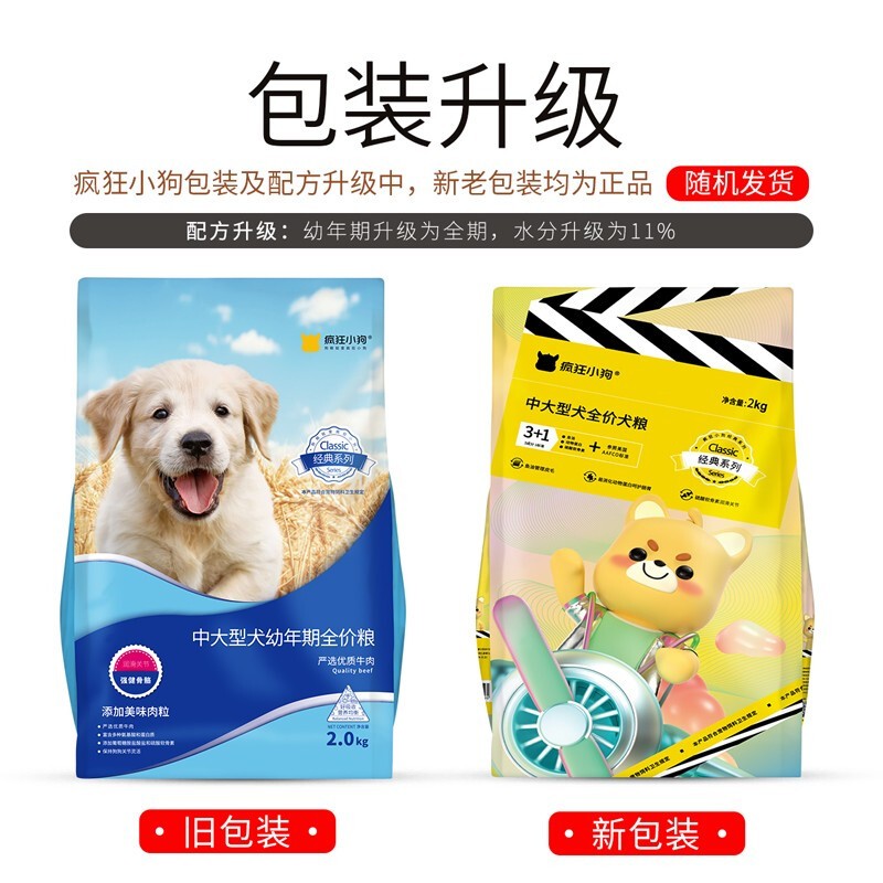 疯狂小狗 狗粮大型犬金毛拉布拉多萨摩耶边牧阿拉斯加20kg犬粮成犬通用型犬粮 大型犬2kg