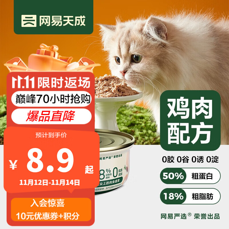 网易天成宠物猫罐头全价猫用主食罐猫粮猫湿粮美味好吸收成猫幼猫主食 鸡肉罐85g