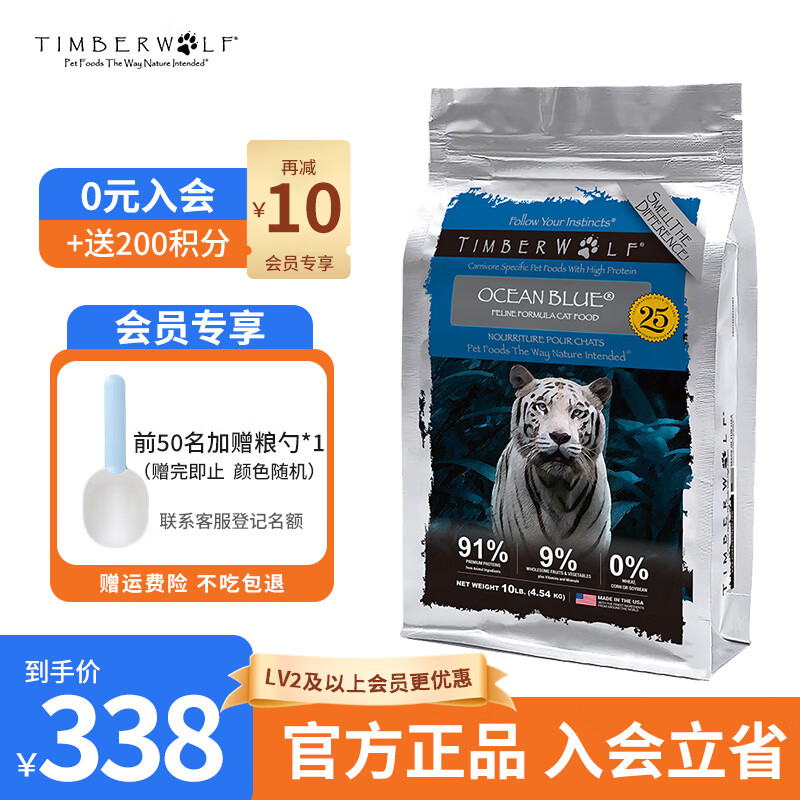 Timberwolf草本魔力猫粮 无谷高蛋白猫粮鸡肉幼猫成猫粮鱼肉全价进口猫粮 高蛋白鱼肉猫粮10磅【24年9月