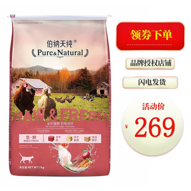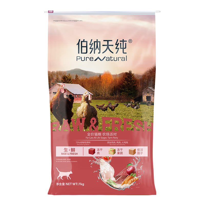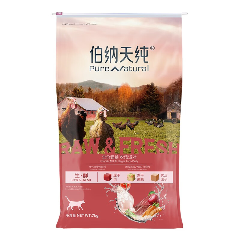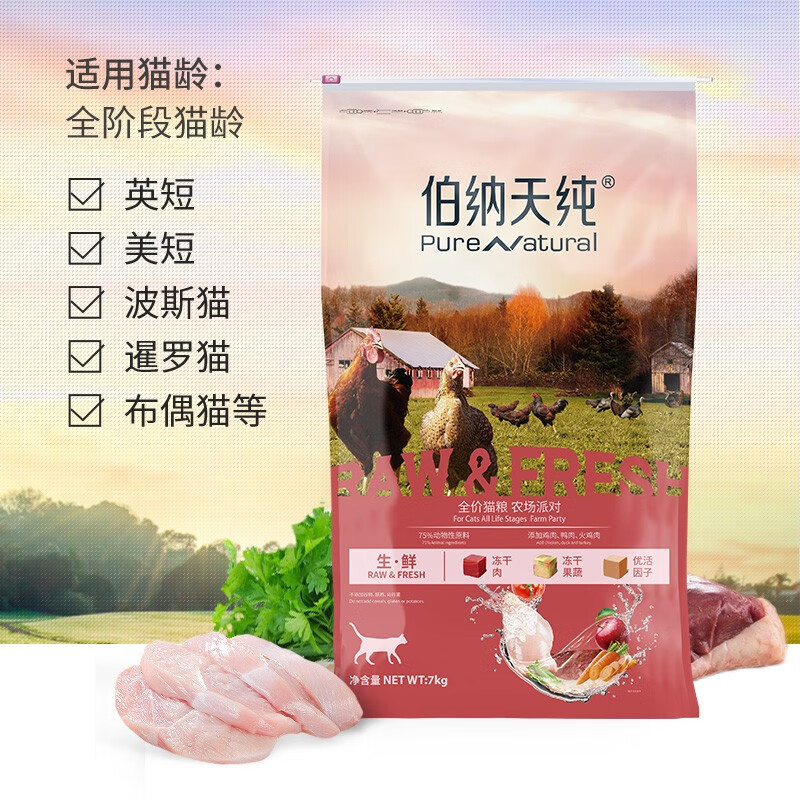 伯纳天纯生·鲜系列深海御鲜全价全期宠物猫粮7kg 猫咪通用主粮冻干系列粮 农场派对全价猫粮7kg