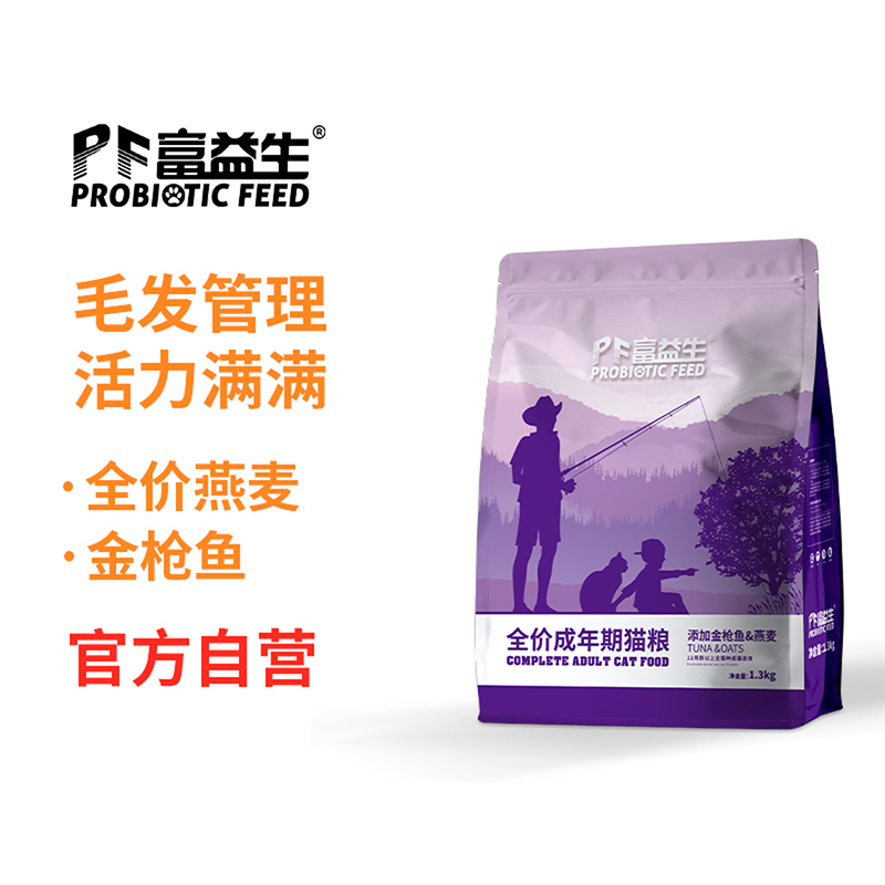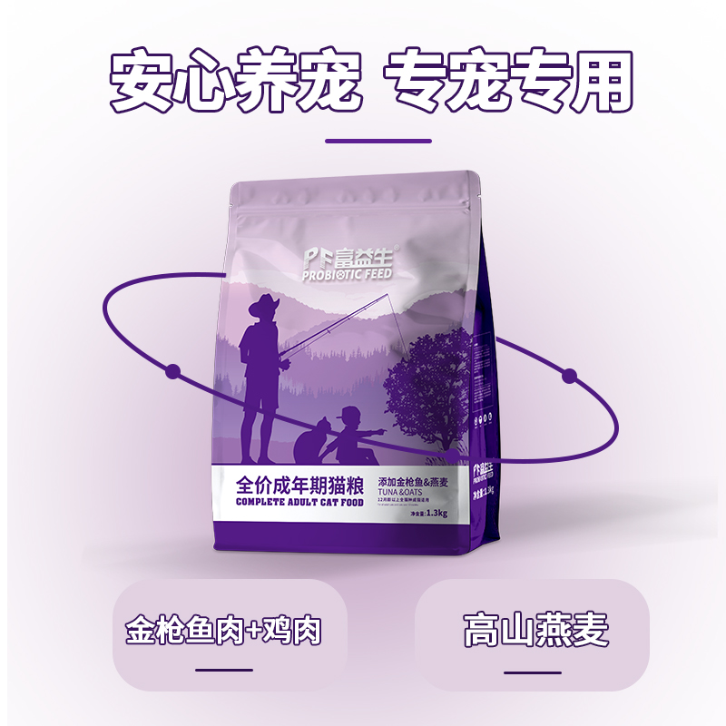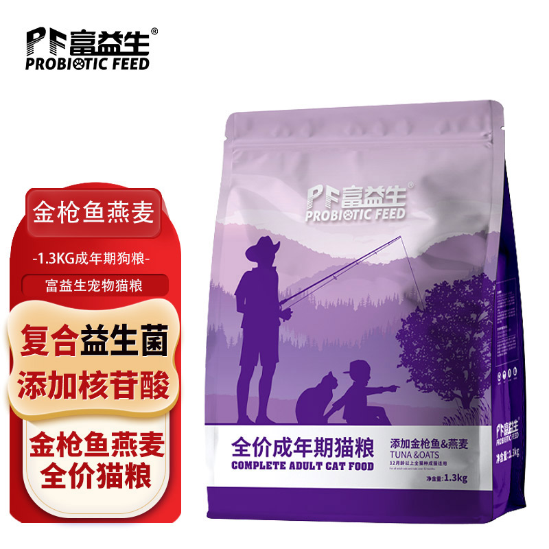 富益生(PF Probiotic Feed)金枪鱼燕麦全价成猫期猫粮1.3kg 英短加菲蓝猫渐层营养高蛋白益生菌通用粮