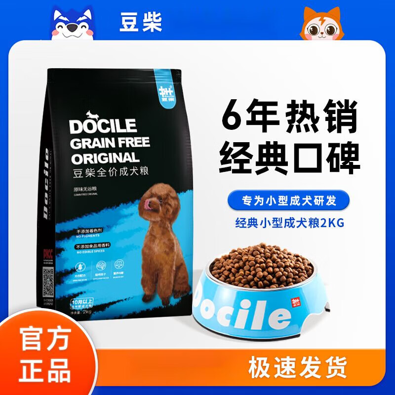 豆柴(docile)狗粮泰迪比熊博美法斗雪纳瑞小型犬美毛去泪痕成犬粮2kg 中小型成犬专用粮:2KG