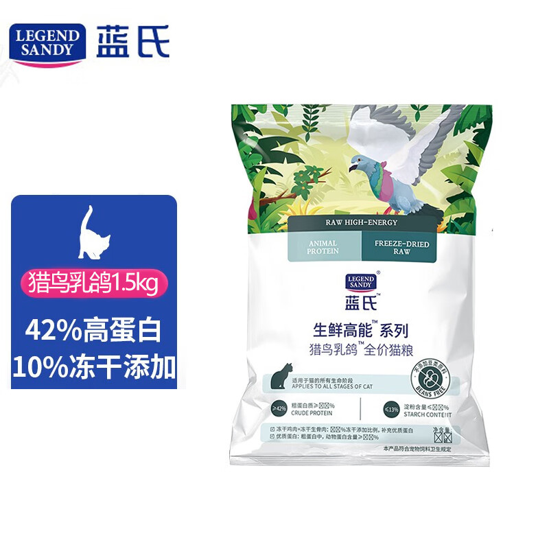 LEGENDSANDY蓝氏全价猫粮成猫幼猫骨肉冻干粮添加乳鸽配方十大品牌 猎鸟试吃装50g