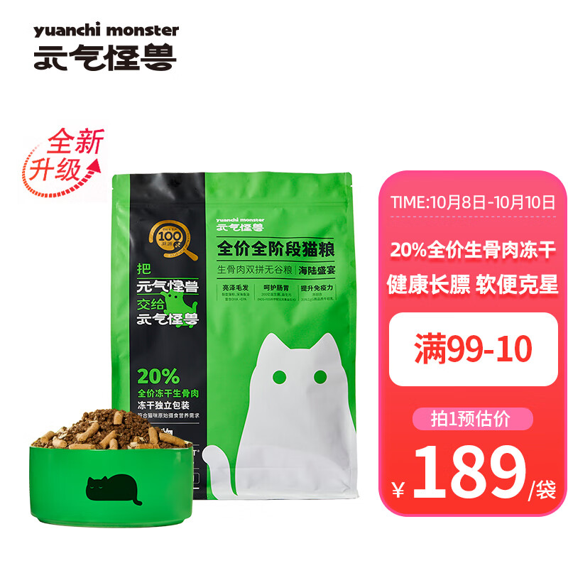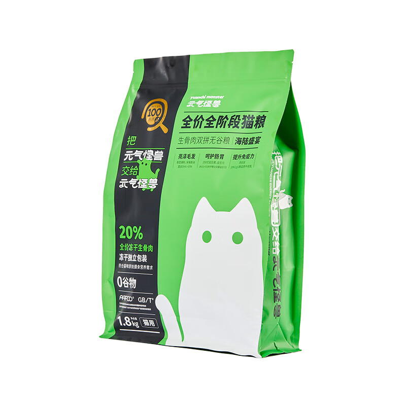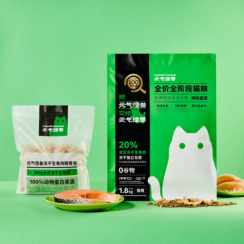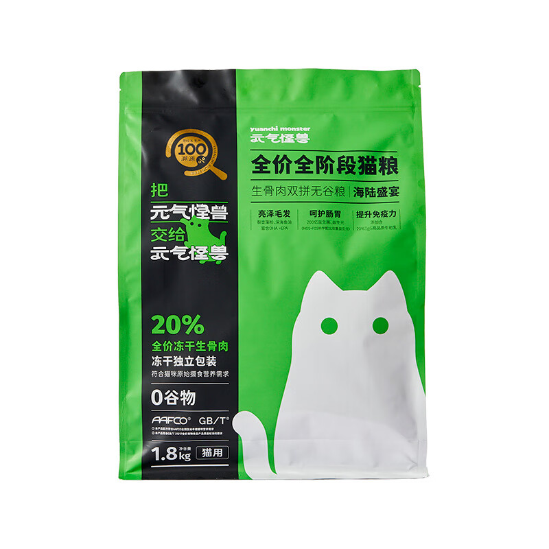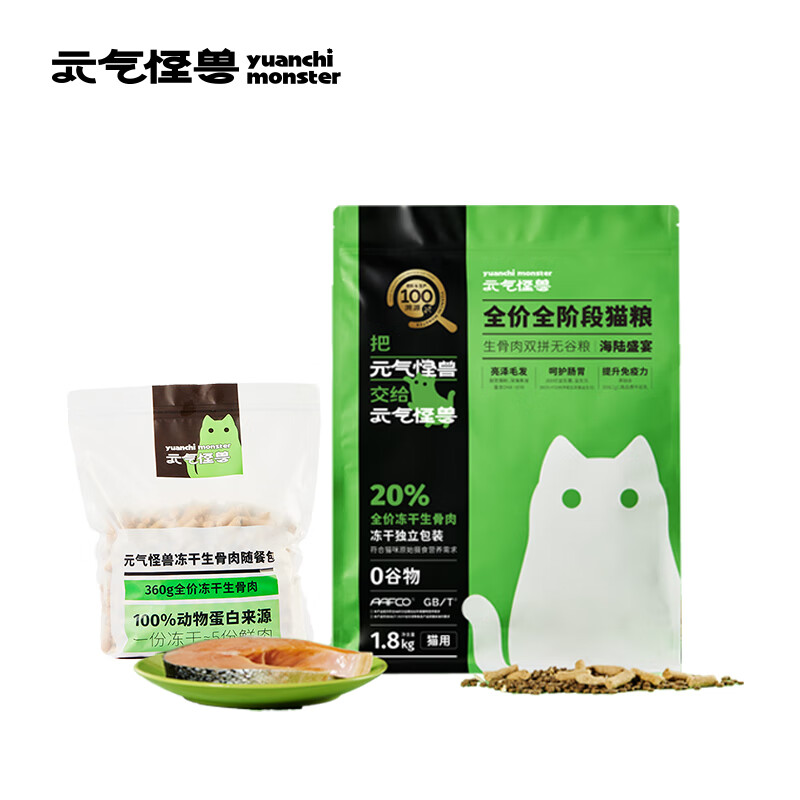 元气怪兽 全价冻干生骨肉猫粮双拼无谷主粮海陆盛宴1.8kg*1袋 成猫幼猫全阶段猫咪食品