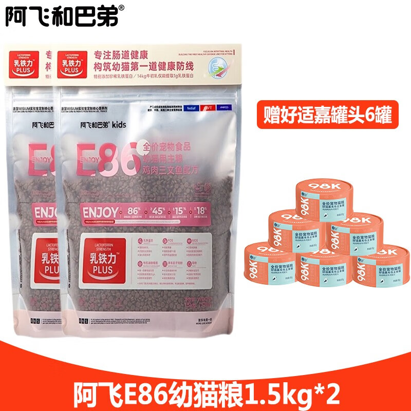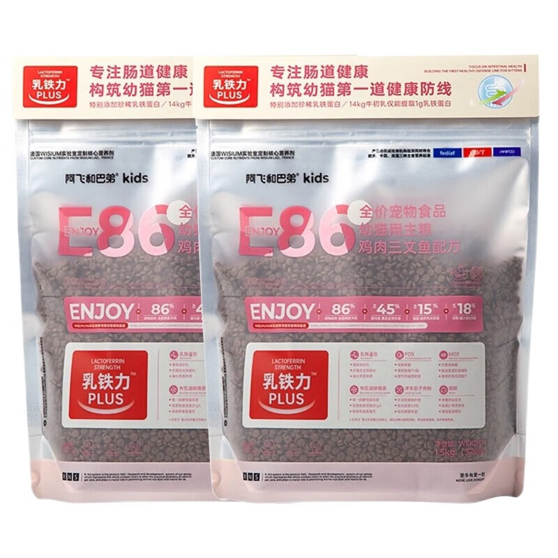 阿飞和巴弟无谷鸡肉三文鱼配方 添加乳铁蛋白 E86幼猫粮 幼猫粮1.5kg*2