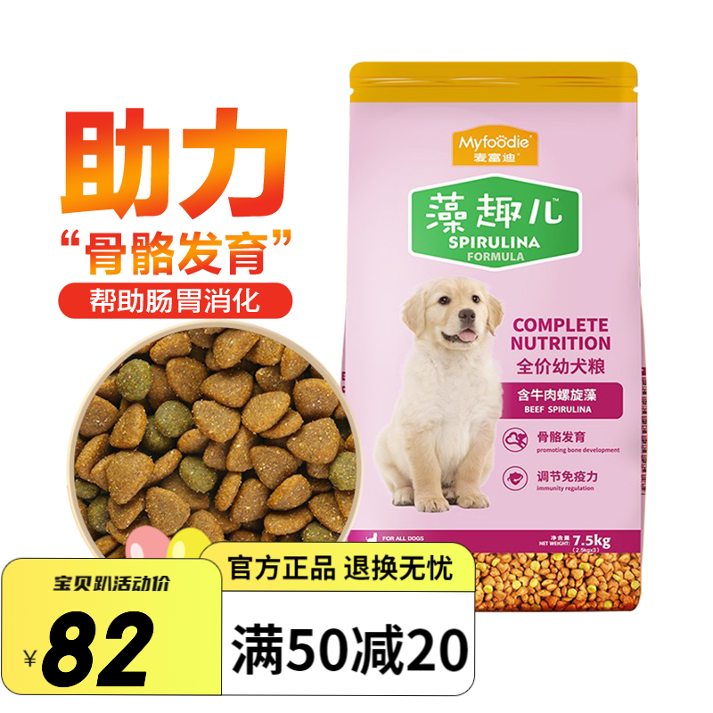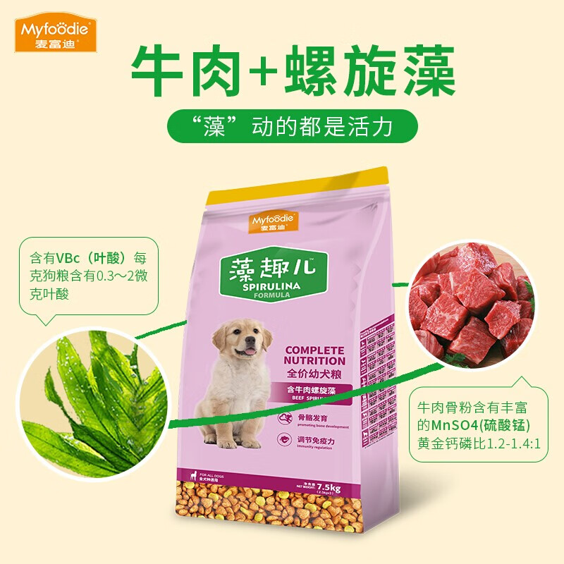 麦富迪宠物狗粮 藻趣儿全价全犬牛肉味通用狗粮(日期新鲜) 藻趣儿 幼犬粮7.5kg