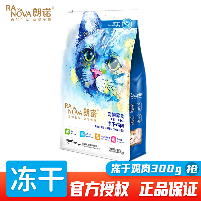 朗诺(RANOVA)冻干肉干猫零食无谷鲜肉猫粮伴侣全期幼猫成猫低敏鸡肉鸭胸肉三文鱼纯肉营养发腮猫冻干 冻干鸡肉300g