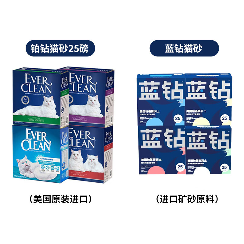 铂钻猫砂25磅EverClean活性炭除臭膨润土矿石低尘猫咪用品10kg 【好脚感】 11.35公斤