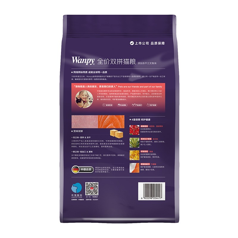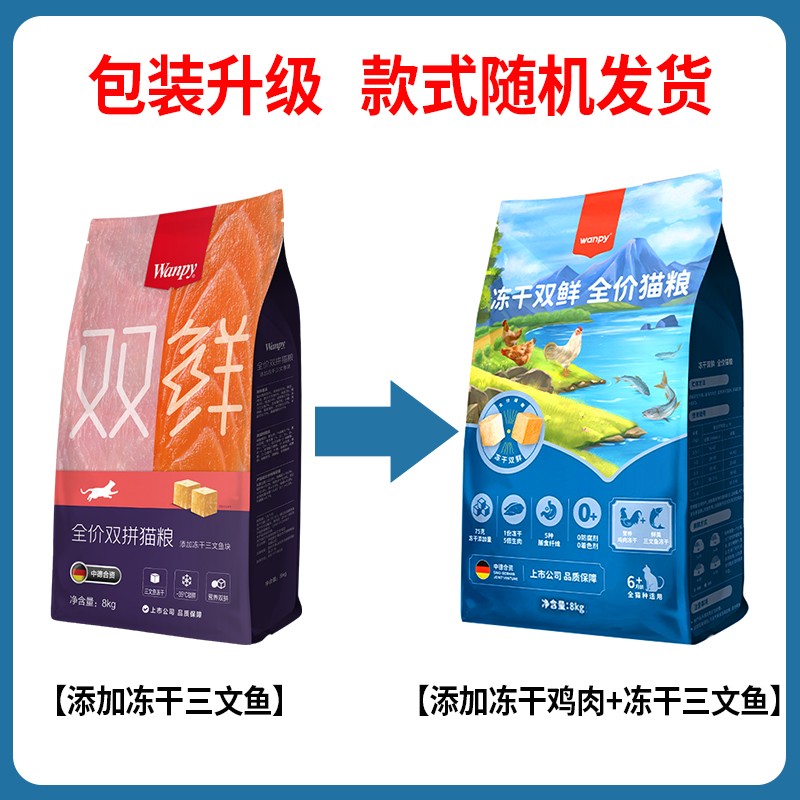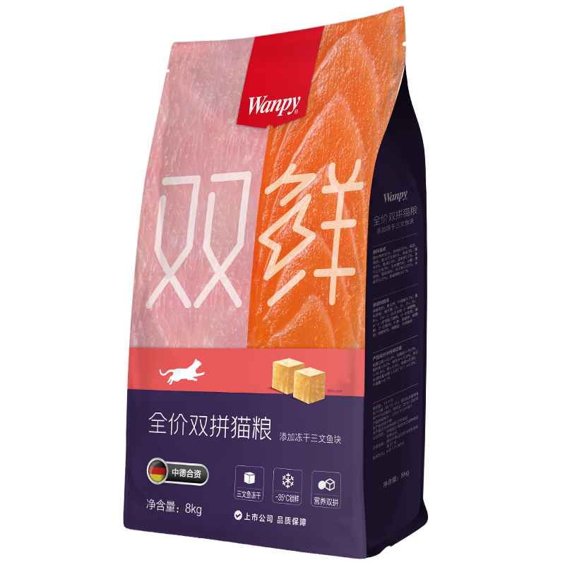 顽皮Happy100 醇鲜猫粮 全价成猫通用猫粮 星厨联盟系列 双鲜冻干三文鱼 8kg
