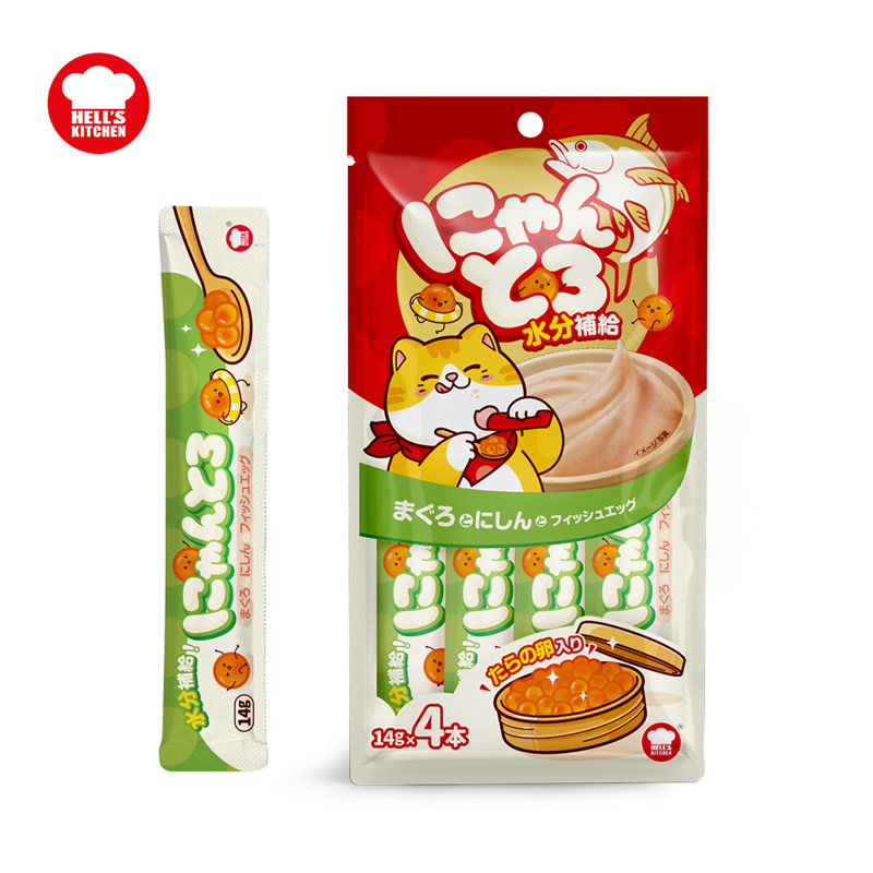 地狱厨房猫条猫零食补水湿粮成猫幼猫营养增肥发腮无诱食剂袋装金枪鱼三文鱼鱼籽味猫酱鲜美 金枪鱼沙丁鱼鱼籽*8包(32条)