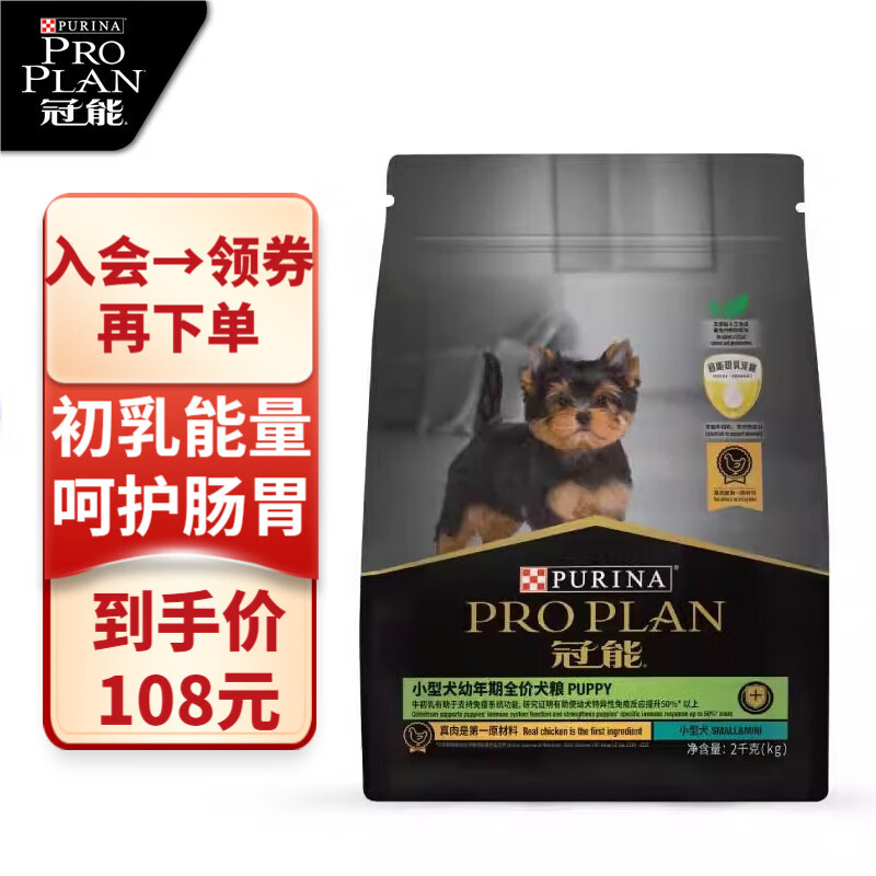 冠能(PRO PLAN)幼犬小型犬全价狗粮泰迪柴犬柯基小狗牛初乳配方呵护肠胃 小型犬幼犬 2kg 幼犬
