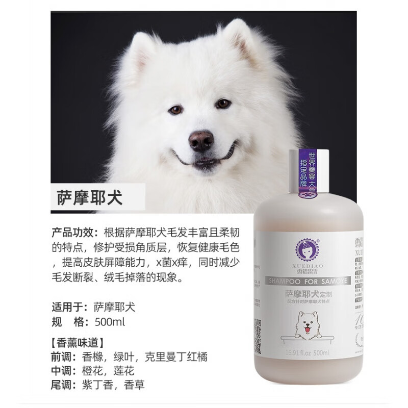 雪貂留香雪貂萨摩耶狗狗沐浴露白毛专用幼犬宠物洗澡用品美白去黄除菌浴液 【萨摩耶犬专用500ml】