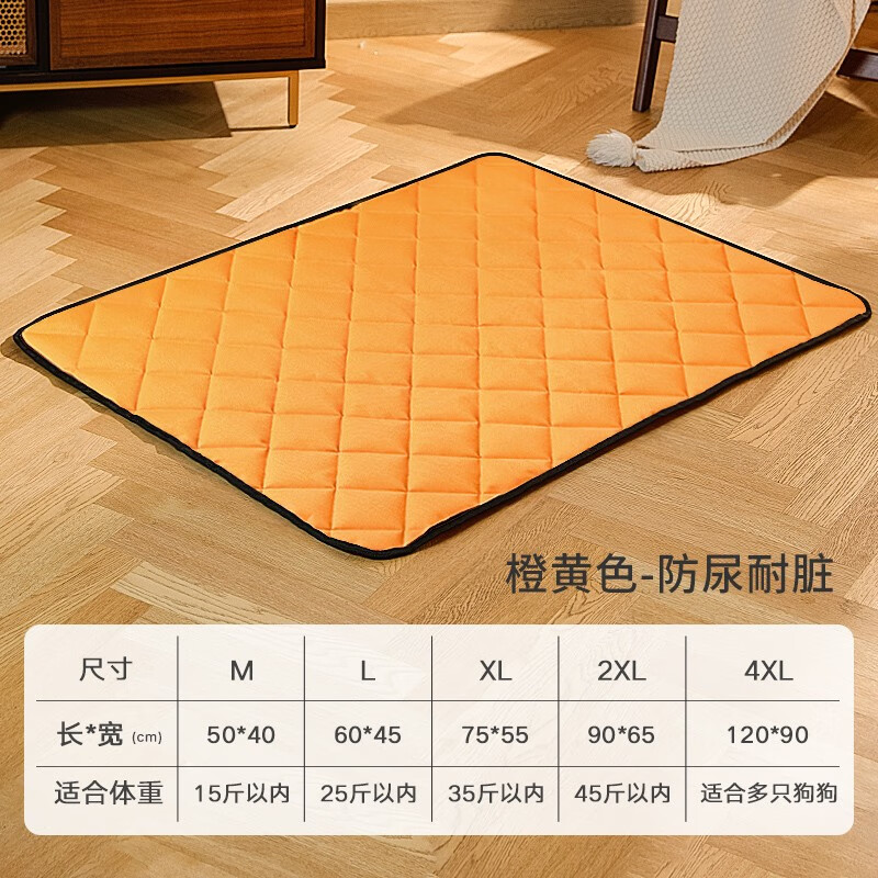 KimPets狗狗垫子四季通用睡垫宠物地垫睡觉用的耐咬猫垫子小狗笼毛毯子 橙黄色(耐脏防水- 耐撕咬) 4XL-超大型(长120cm宽90cm