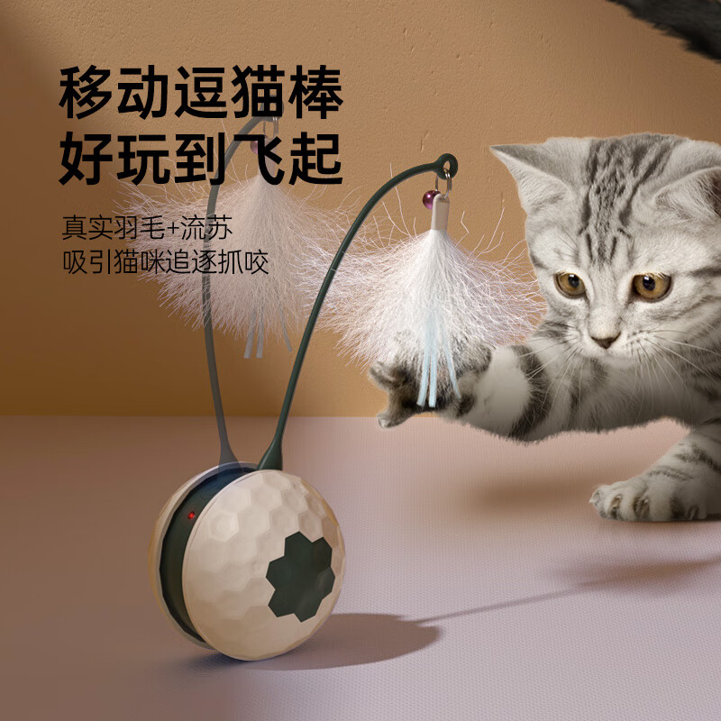 法耐(FANAI) 猫玩具自嗨解闷逗猫球猫咪自动逗猫器幼猫电动逗猫棒长杆羽毛 白色摇摆球 替换羽毛摆杆*3(含球本身杆)