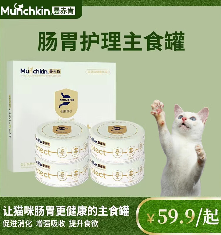 曼赤肯(Munchkin)曼赤肯猫罐头主食罐幼猫成猫咪狗狗湿粮术后产后泌尿绝育康复护理 【Keep CAN】肠胃护理猫用主食罐 4罐