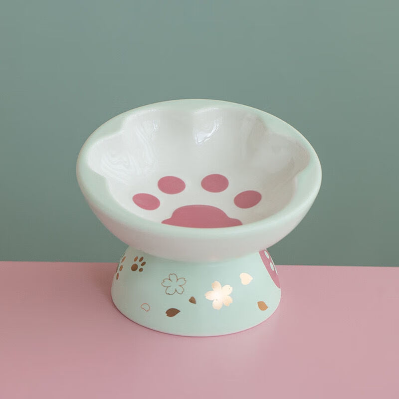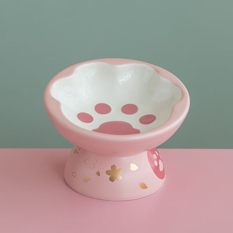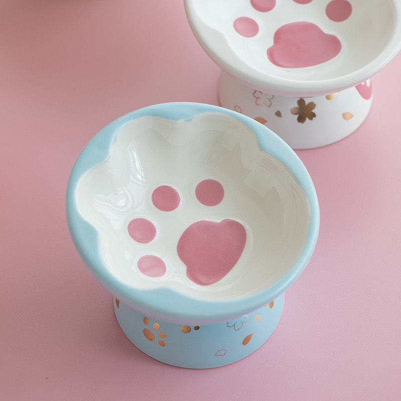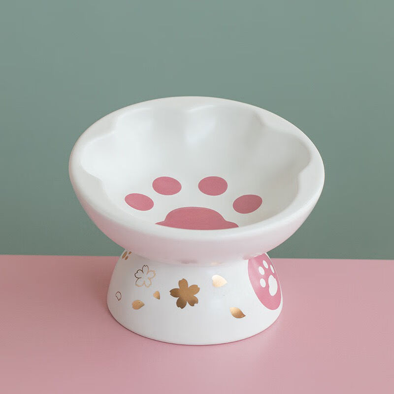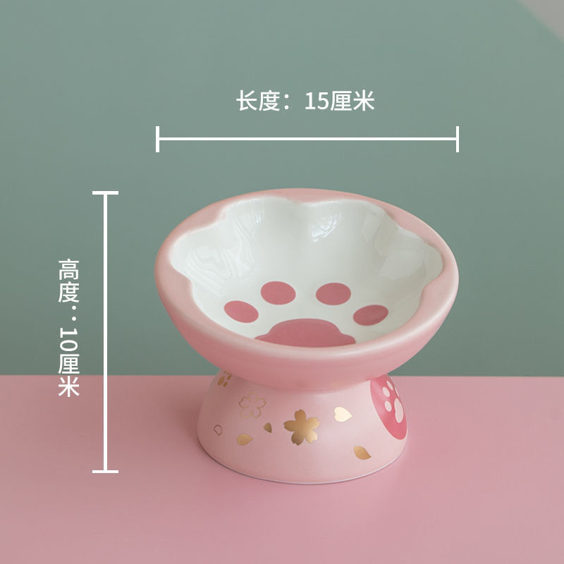 猫爪猫碗陶瓷防打翻高脚斜口保护颈椎宠物狗狗猫咪水饭猫粮猫食盆 白