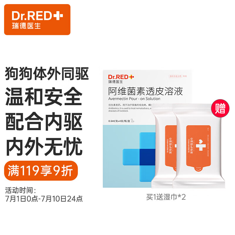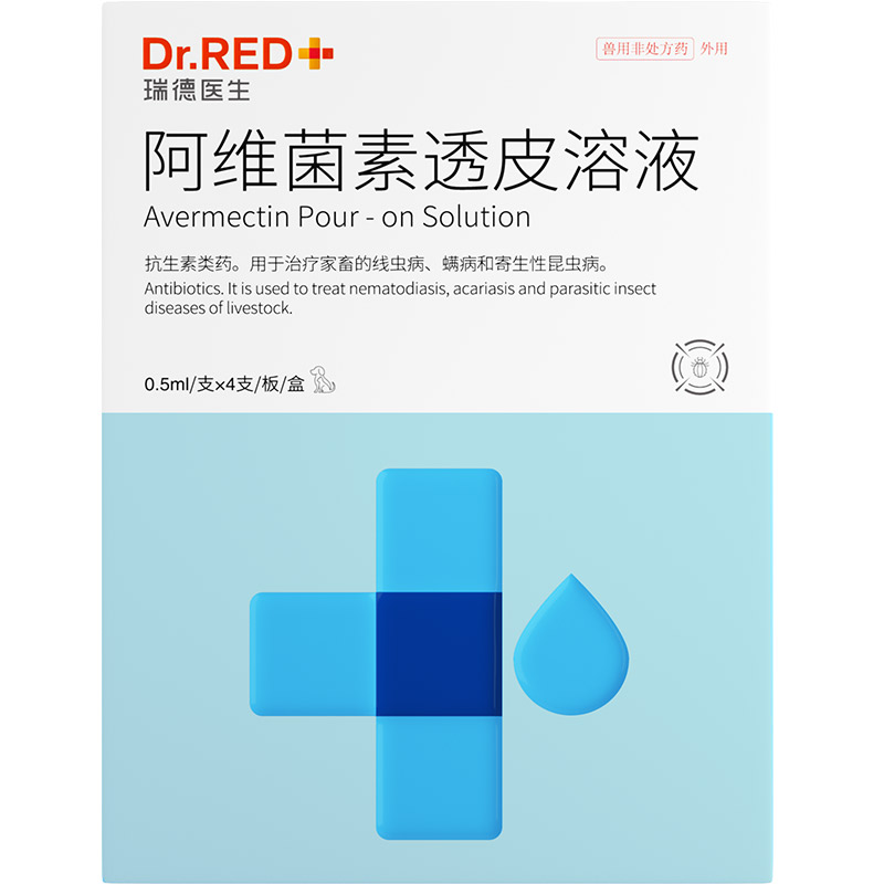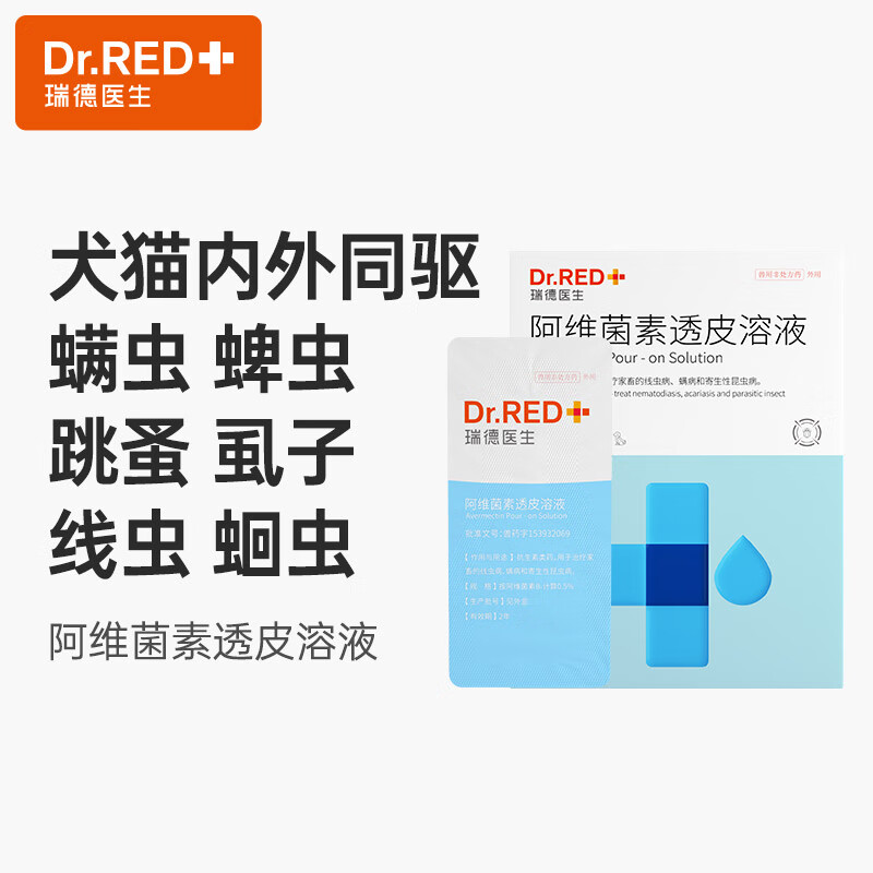 瑞德医生 Dr. Red 宠物驱虫药体内外一体狗狗除跳蚤蜱螨虫宠物狗狗专用滴剂 阿维菌素透皮溶液4支装