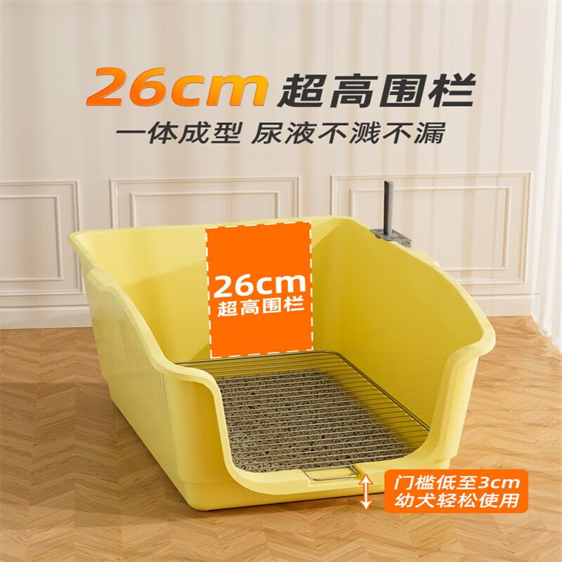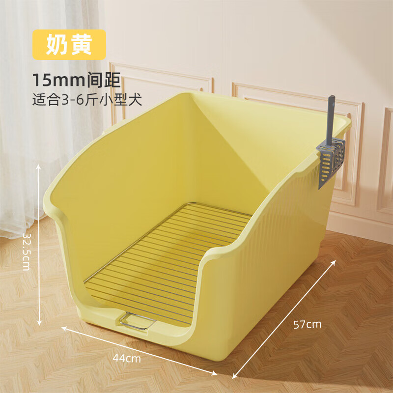 宠淘气狗厕所中小型犬专用高围栏尿盆防踩屎狗狗大小便神器不锈钢狗砂盆 【高围栏】奶黄15mm孔距