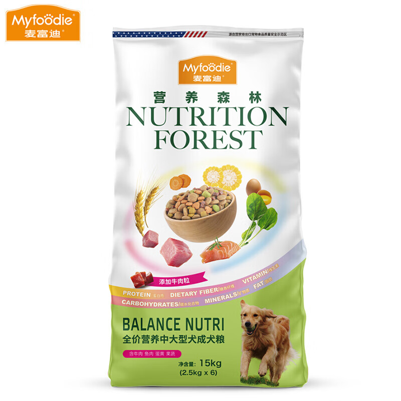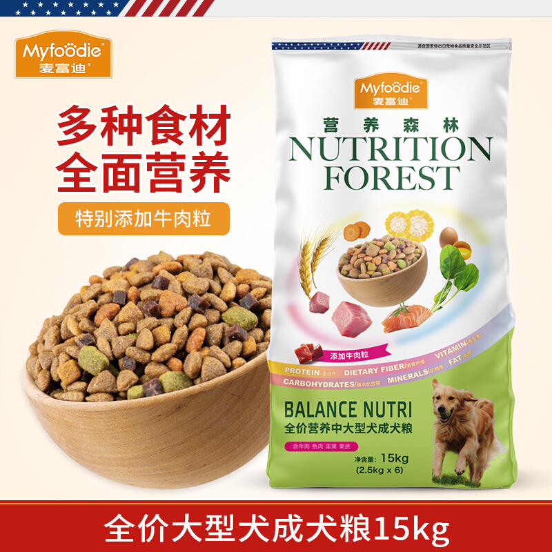 麦富迪 营养森林系列狗粮柴犬金毛泰迪全犬通用型 中大型成犬粮15kg