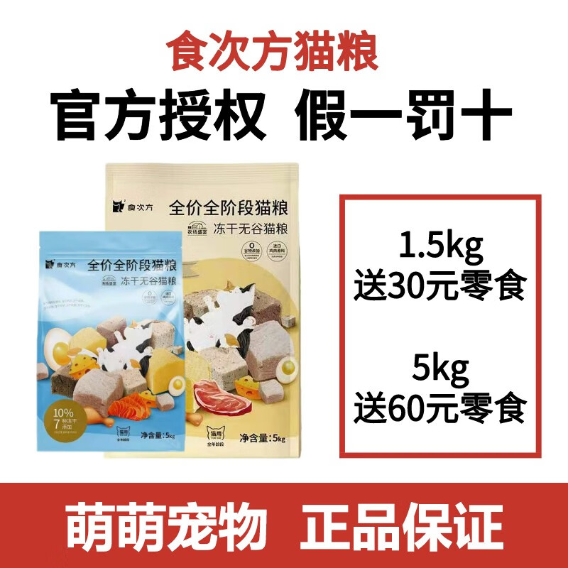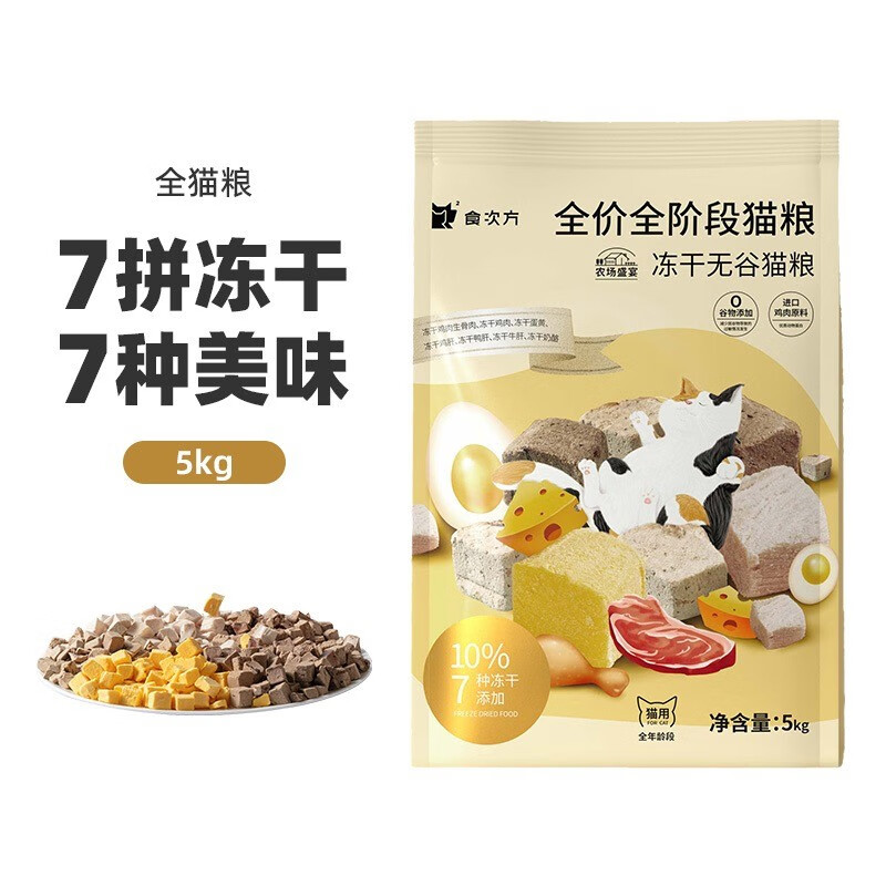 食次方猫粮无谷冻干鸡肉成幼猫通用粮全价全期美短增肥发腮主粮 1.5kg 农场盛宴冻干猫粮