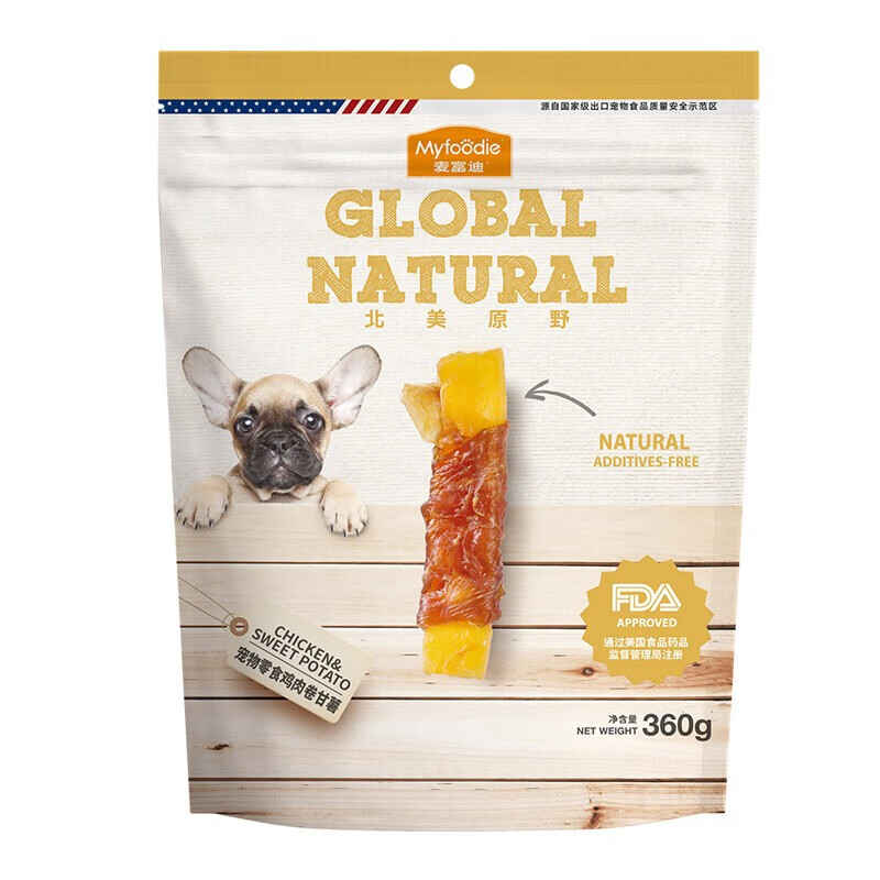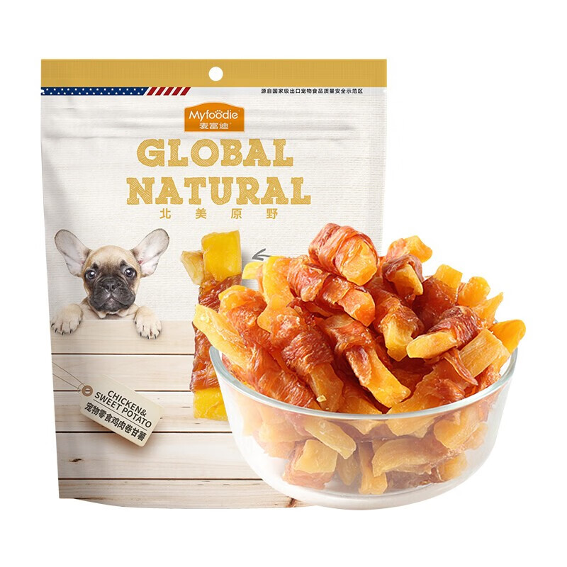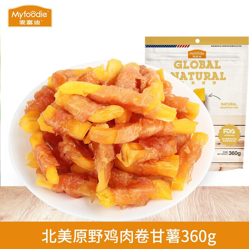 麦富迪(Myfoodie)狗狗零食北美原野系列磨牙解馋鸡鸭肉干比熊泰迪宠物训练奖励360g 鸡肉卷甘薯360g