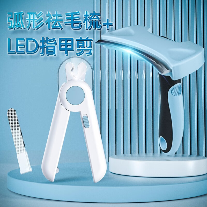 hoopet猫梳子猫毛清理器狗狗去毛器宠物针梳刮毛器狗毛梳毛刷长毛开结梳去浮毛神器大型犬猫咪用品 弧形款大号 led指甲剪(可照血线)