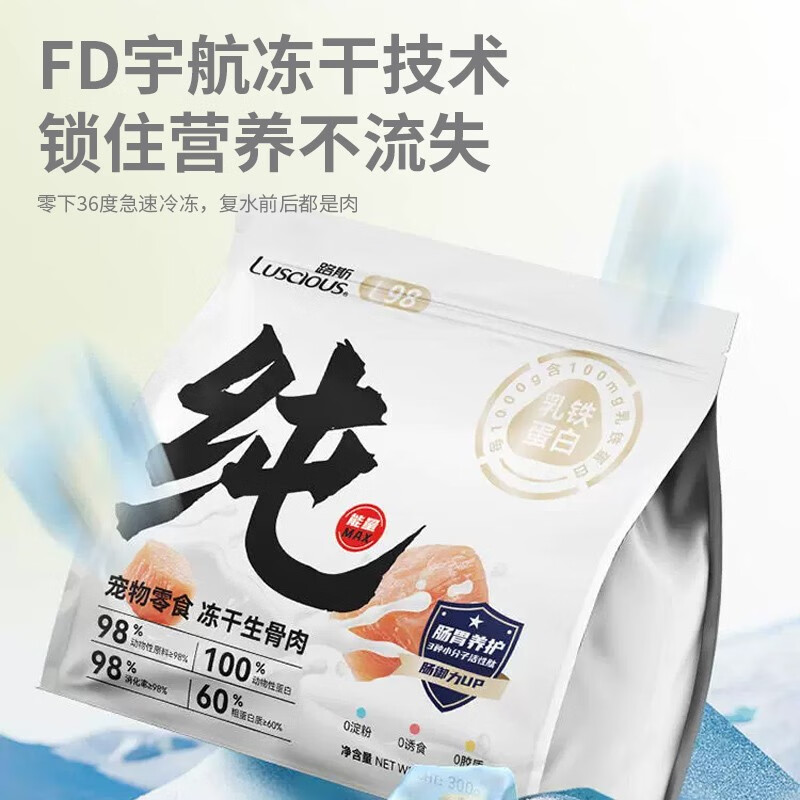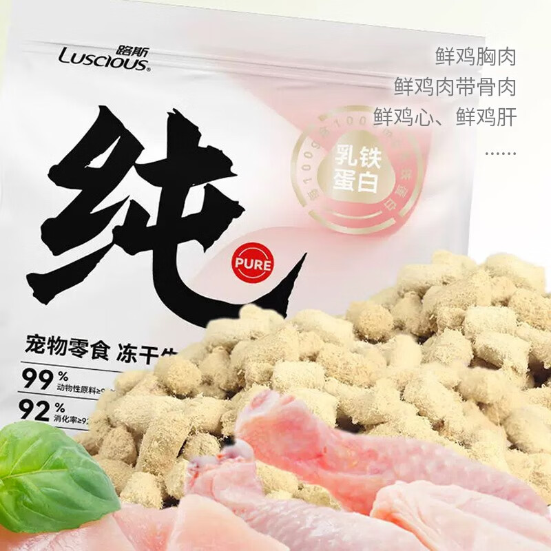 路斯(Luscious)冻干猫零食鸡肉粒大包装成猫幼猫拌粮猫零食可复水鸡胸肉磨牙解馋 【乳铁蛋白】生骨肉冻干300g