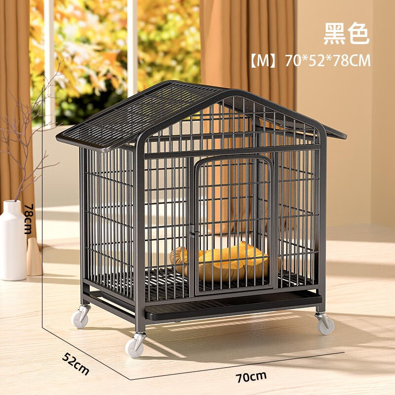 HELLOLEIBOO徕本 狗笼子小型犬室内带厕所宠物笼大型犬泰迪柯基柴犬狗窝围栏 【屋顶款】70*52*78 黑色