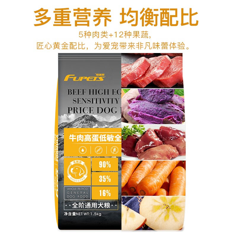 福派斯狗粮低温烘焙牛肉金枪鱼高蛋白低敏犬粮中小型幼犬成犬通用1.5kg