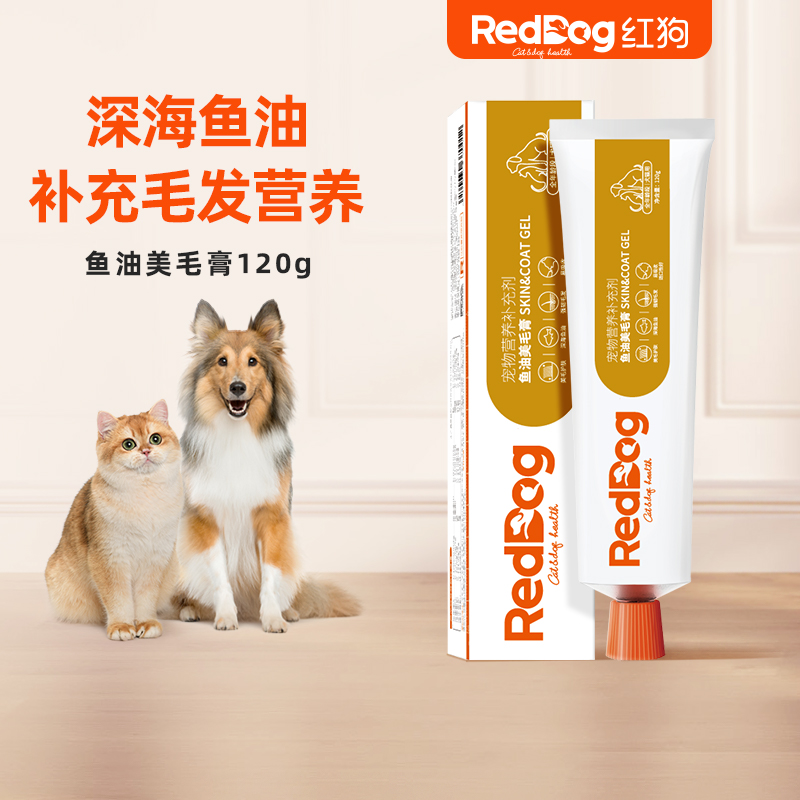 红狗RedDog 关节膏 猫咪狗狗补钙健骨关节修护 鲨鱼软骨素维生素鱼油 成幼犬猫营养补充120g 美毛膏120g 关节膏120g