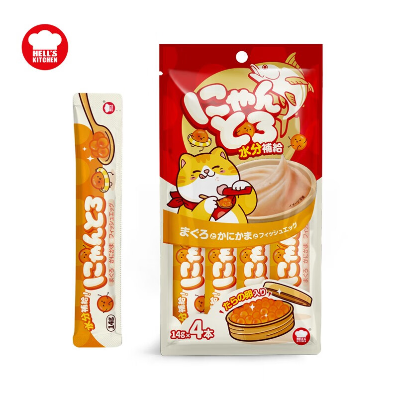 地狱厨房(Hell's Kitchen)鲁鲁条猫条猫零食成猫鱼籽猫条湿粮肉泥猫咪罐头 金枪鱼蟹肉棒56g(14g*4条/包)