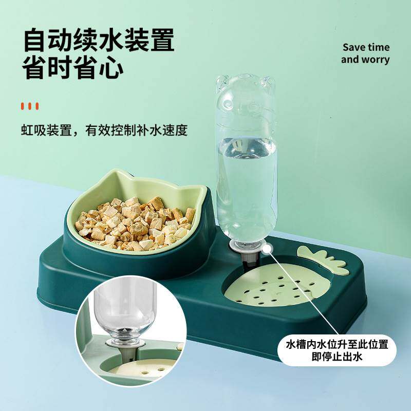 猫碗自动饮水猫咪喂食器猫食盆防打翻幼猫专用宠物吃饭双碗喂猫粮