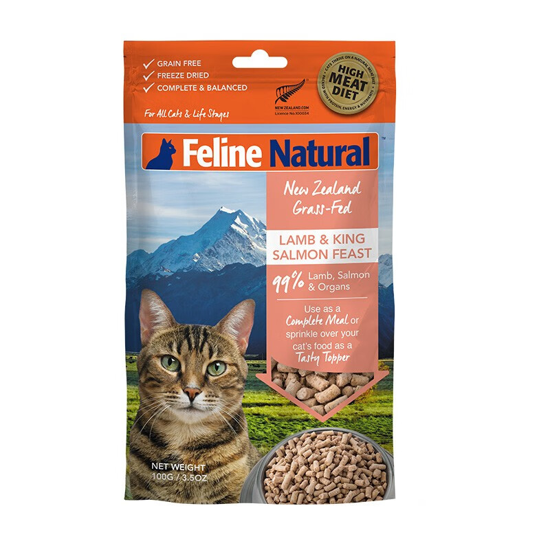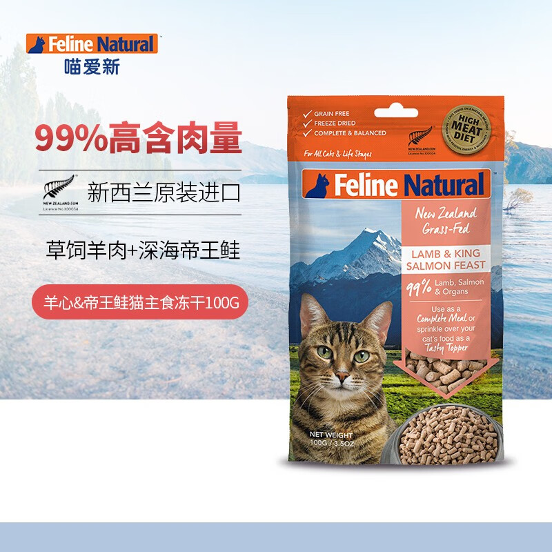 喵爱新【顺丰快递】 K9猫粮 猫冻干 新西兰进口成幼猫通用主食冻干粮 羊心帝王鲑100g