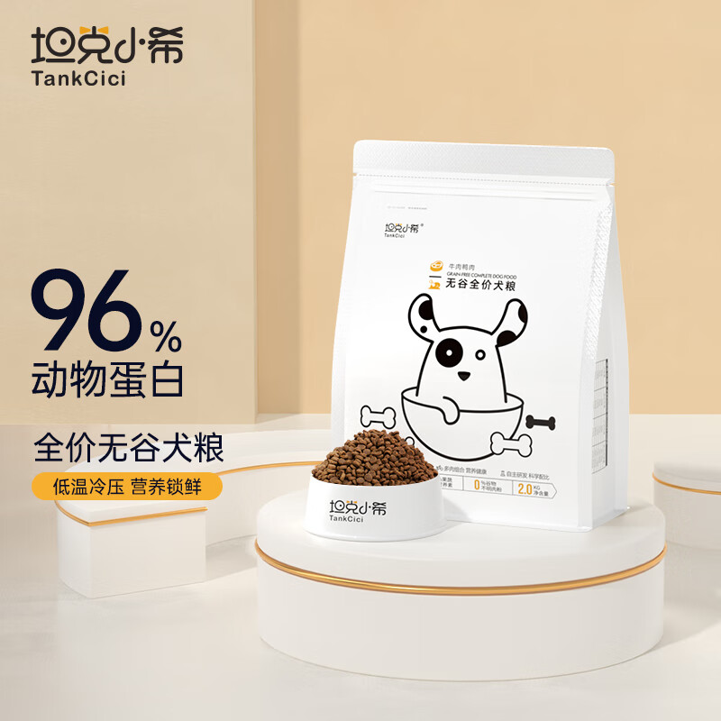 坦克小希(Tankcici )牛肉鸭肉狗粮成犬幼犬通用型全价无谷低敏狗粮2kg