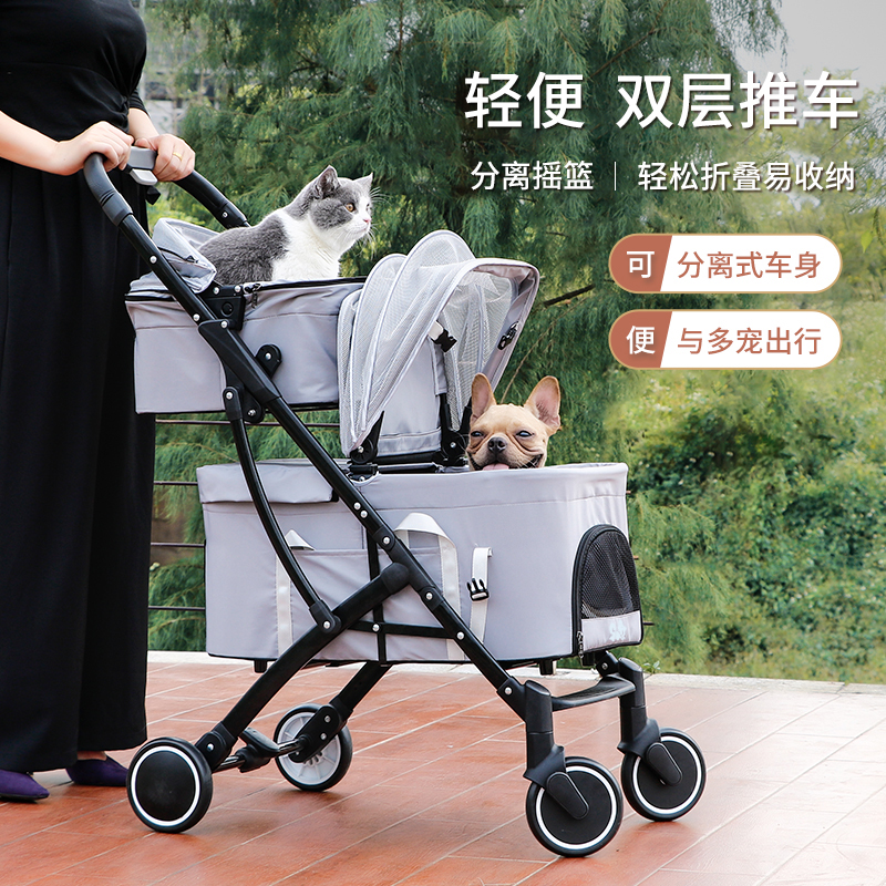 DO DO PET双层宠物推车 分离式座舱狗车户外出行便携可折叠猫咪狗狗手推车 紫色-上下层多宠适用-可分离摇篮