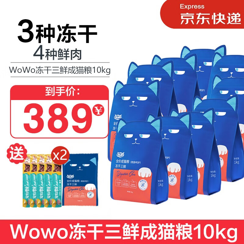 【找客服领大额券】wowo喔喔猫粮 无谷冻干三鲜全价猫粮 英短美短布偶成猫粮 10kg(1kg*10袋)